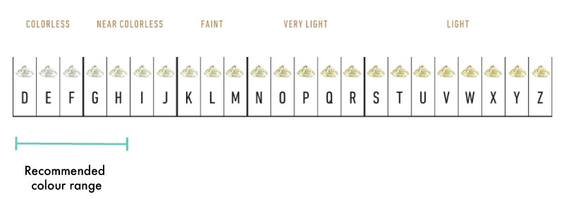Diamond colour is graded on an alphabetical scale, starting at D (the whitest) all the way to Z (the yellowest).