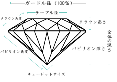 ガードルとはダイヤモンドのエッジをなす狭い帯状の外周部分であり、指輪セッティングのほとんどの表面を握っています。