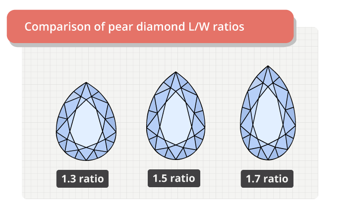 Lower L/W ratio pear diamonds are generally priced lower that higher L/W ratios, as they use more of the rough diamond (which means less needs to be wasted) and there are more of them available (law of supply and demand coming into effect).