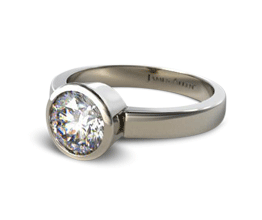Bezel settings are also much lower profile than any other setting styles – they don’t stand up as tall above the wearer’s finger. The advantage of low profile bezel set engagement ring is that they are much less likely to get snagged during day to day wear.