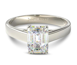 The classic setting that flatters an emerald shape stone the most is a basic 4 prong solitaire. It allows the maximum amount of light to enter and reflect off the stone, as well as holding the stone securely at the 4 corners. Due to their simplicity, solitaire settings are also always the most cost effective setting style.