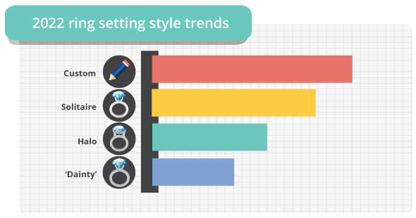 Another interesting term that was mentioned by several of our respondents was the trend towards ‘dainty’ settings, with ring buyers choosing delicate settings that allow their center stones to really stand out.