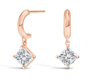 Rose Gold Drop Huggie Princess Diamond Earrings