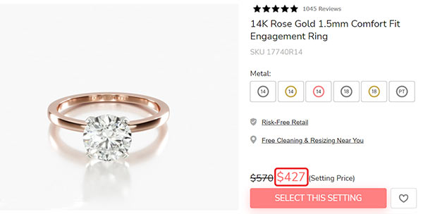 Click here to find out more information about this 14K Rose Gold 1.5mm Comfort Fit Engagement Ring from my recommended retailer James Allen.